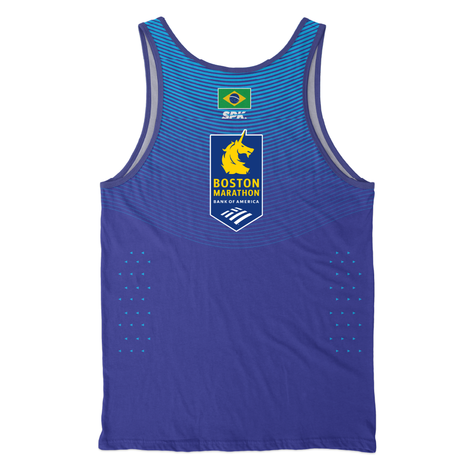 Essa regata já vai com a logo da Boston Marathon aplicada na parte superior das costas e você só precisa enviar o nome do atleta, que será personalizado na frente da camisa.