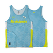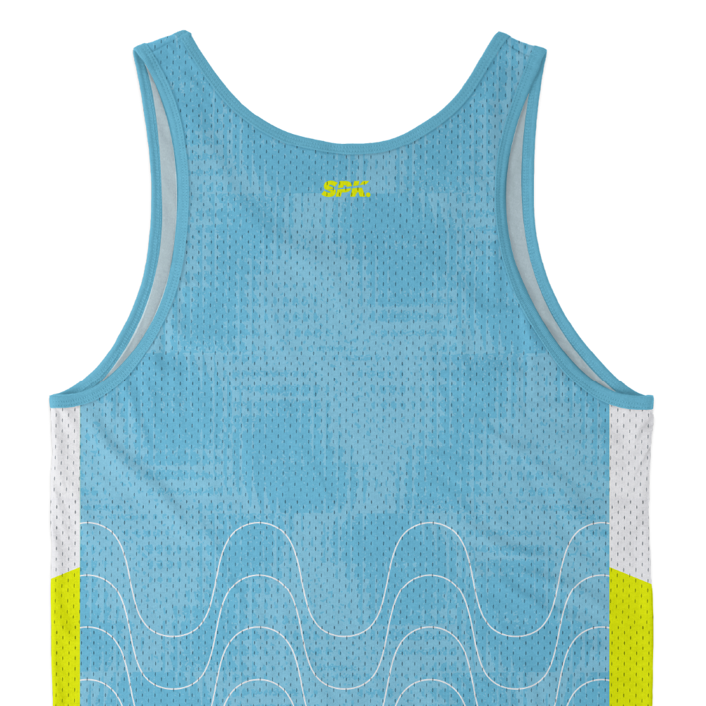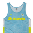 Camiseta Regata Corrida Maratona Running Rio de Janeiro Carica Vibe - Azul claro/Amarelo fluorescente/Branco